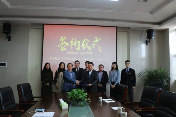 11月9日,韩国仁荷工业专门大学国际交流院院长金熙教教授、空乘服务专业洪荣植教授、教师金京河女士及大韩航空人事部金庆旼先生一行四人来访我院并举行国际教育合作签约仪式。学院副院长谢友宝、舒叔宝,文学艺术学部及国际教育培训中心相关人员出席交流会及签约仪式。